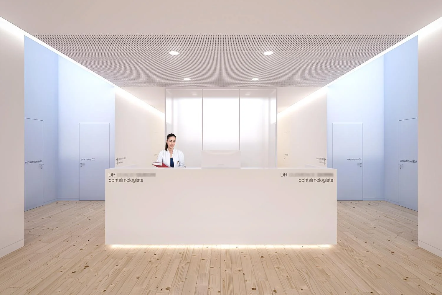 Mission de décoration pour le compte d’un nouveau centre de médecine esthétique de 110m² situé près du Champ de Mars. A partir du programme de conception du Maitre d’Ouvrage, notre décoratrice d’intérieur réalise les images de synthèse des futurs espaces de travail puis intègre les codes de l’identité visuelle de la nouvelle marque. Mission complétée par la réalisation des planches d’ambiance et de matériaux. Nous avons créé un environnement de travail harmonieux où les jeux de lumière et les espaces sont mis en avant.